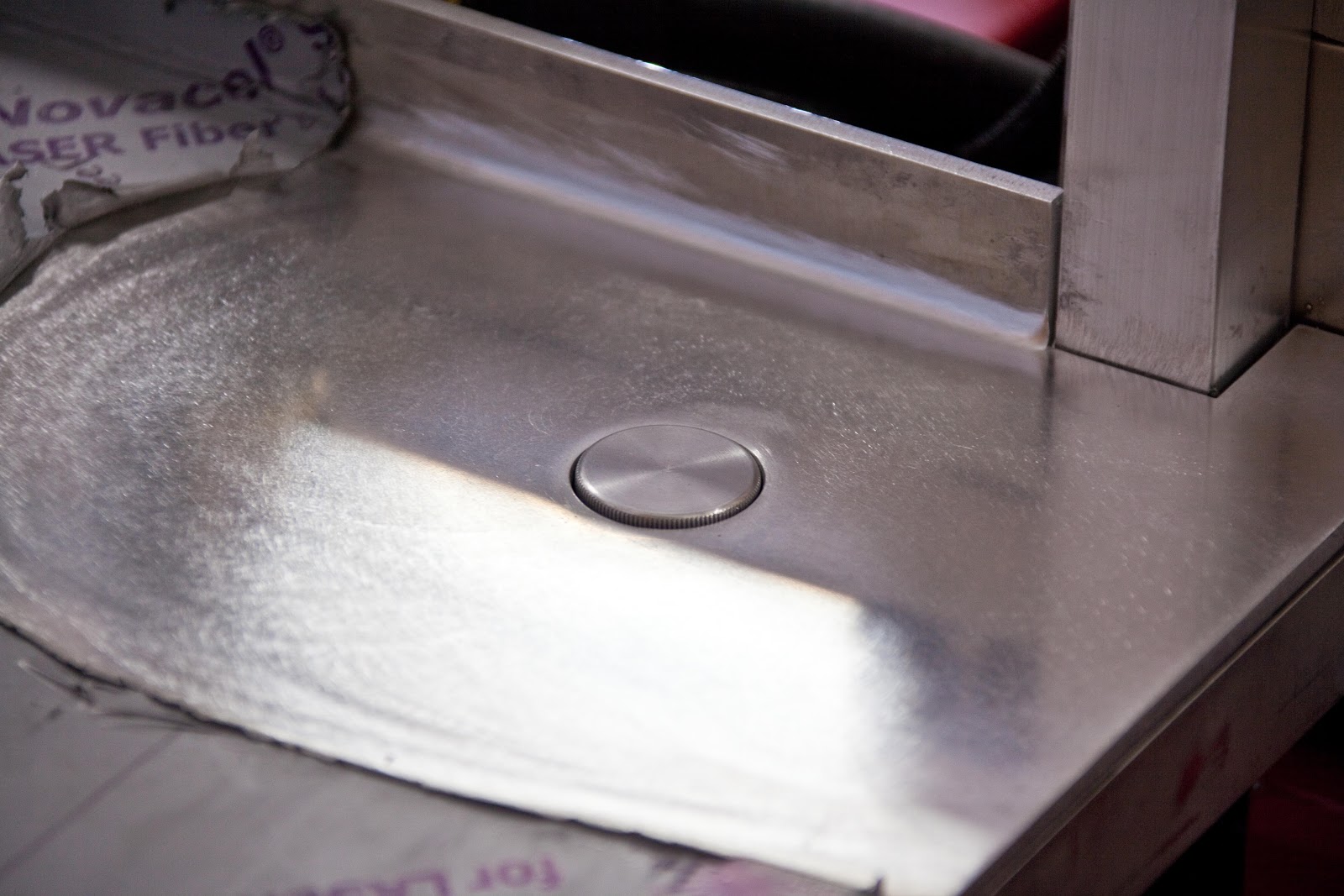 Chris making the final adjustment to the corners to fit up with the rest of the body panels. If your wondering why the body line doesn't go all the way through to the other side it's because the cab was to close to box. I took the measurement at the bottom and didn't count that the cabs widest point is the center where the body line is. Lucky you will never see it because the stacks cover the space between the cab and box.